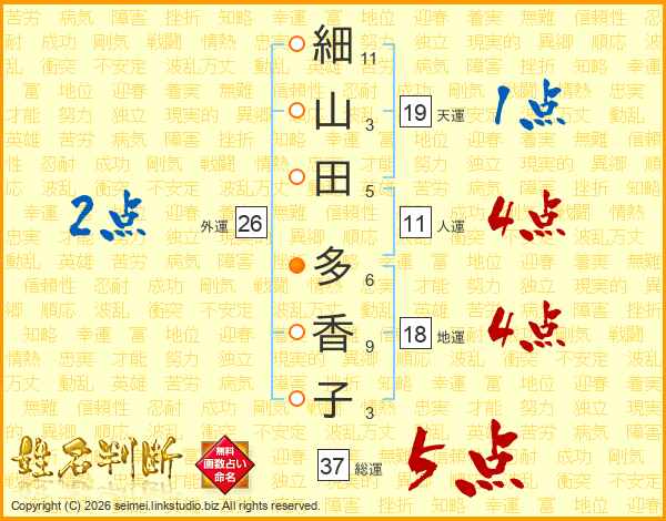細山田多香子さんの総運は37画の5点!