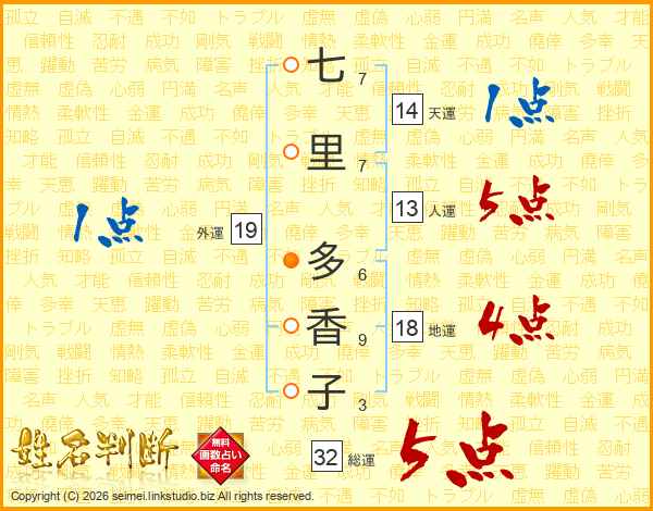 七里多香子さんの総運は32画の5点!