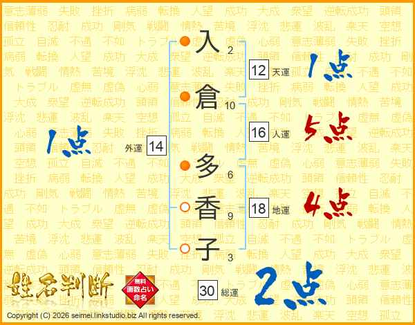 入倉多香子さんの外運は14画の1点!