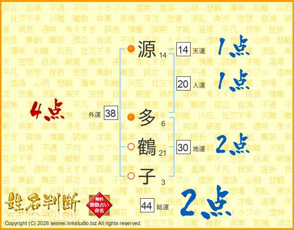 源多鶴子さんの総運は44画の2点!