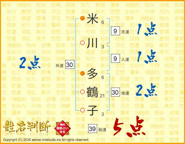 米川多鶴子さんの総運は39画の5点!