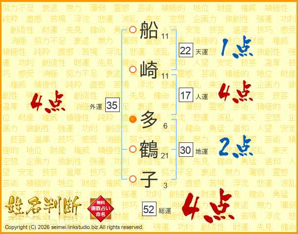 船崎多鶴子さんの総運は52画の4点!