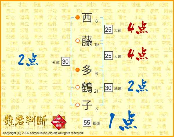 西藤多鶴子さんの人運は25画の4点!