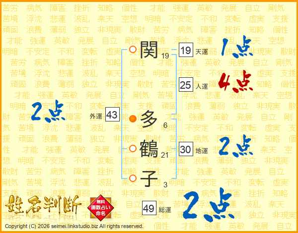 関多鶴子さんの総運は49画の2点!