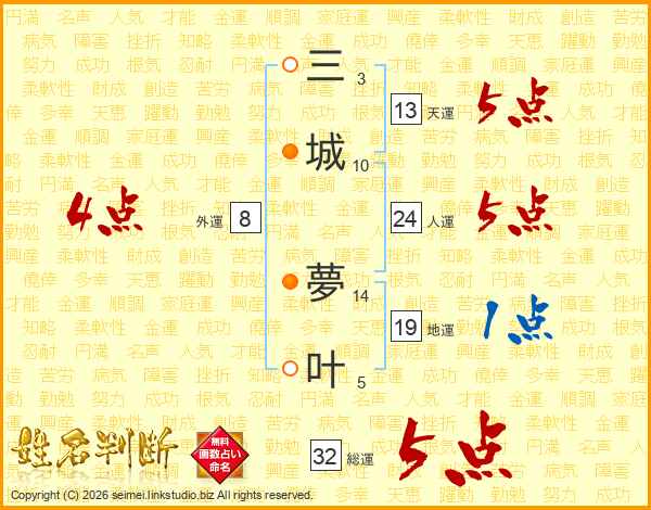 三城夢叶さんの人運は24画の5点!