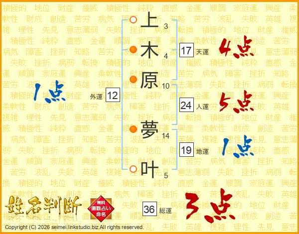 上木原夢叶さんの総運は36画の3点!