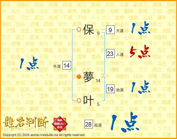 保(9画) 夢(14画)叶(5画)