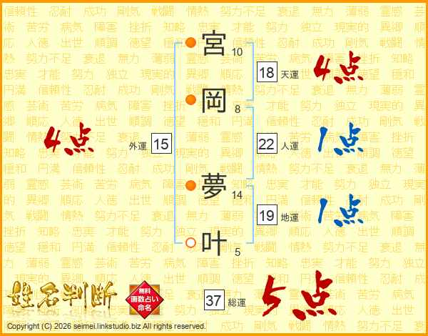 宮岡夢叶さんの総運は37画の5点!