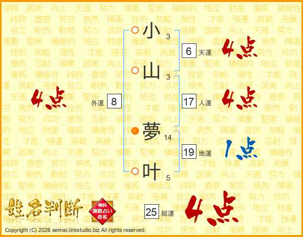 小山夢叶さんの総運は25画の4点!