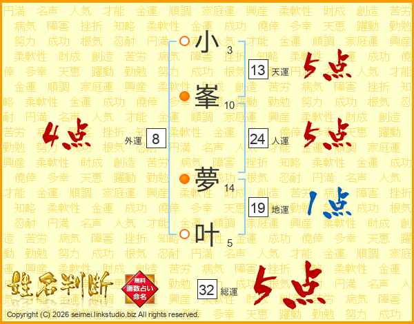 小峯夢叶さんの総運は32画の5点!