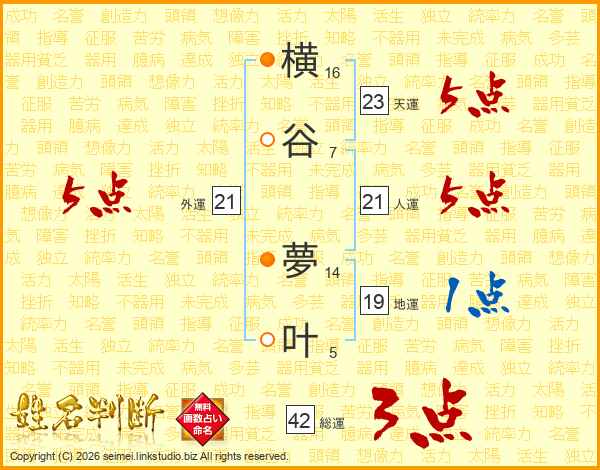 横谷夢叶さんの外運は21画の5点!