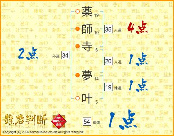 薬師寺夢叶さんの外運は34画の2点!