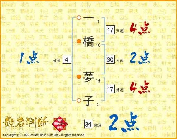 一橋夢子さんの総運は34画の2点!