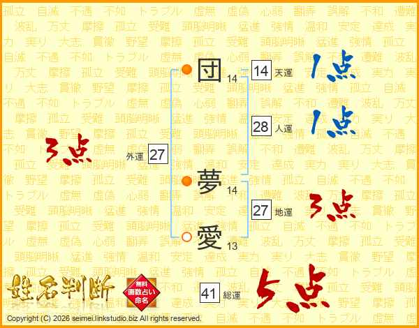 団夢愛さんの総運は41画の5点!