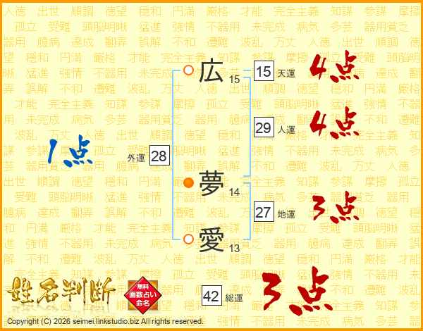 広夢愛さんの総運は42画の3点!