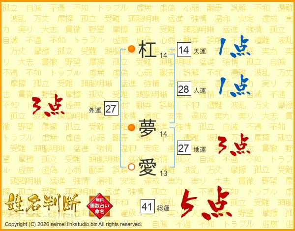 杠夢愛さんの総運は41画の5点!