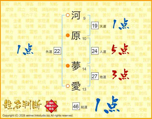 河原夢愛さんの総運は46画の1点!