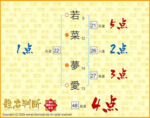 若菜夢愛さんの総運は48画の4点!