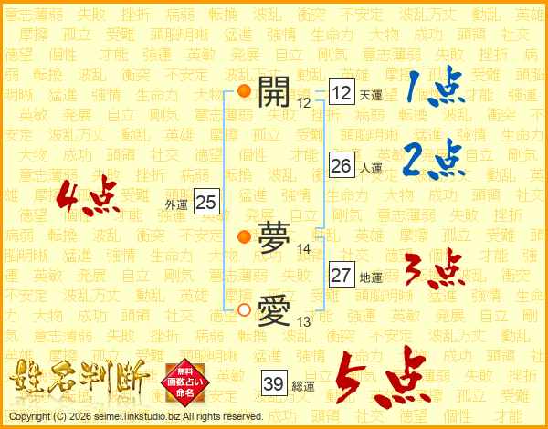 開夢愛さんの総運は39画の5点!