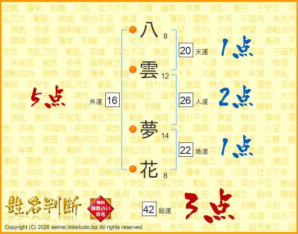 八雲夢花さんの外運は16画の5点!