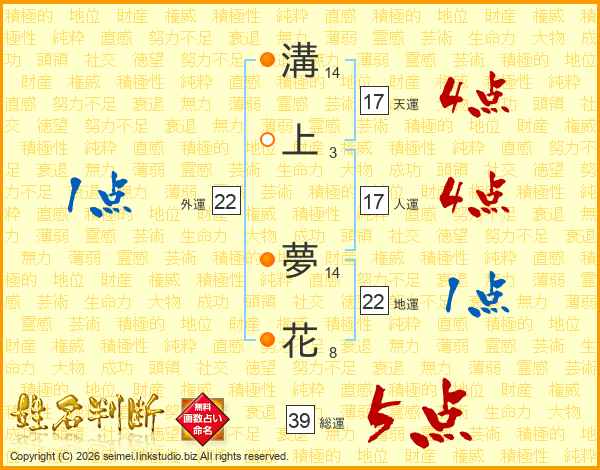 溝上夢花さんの天運は17画の4点!