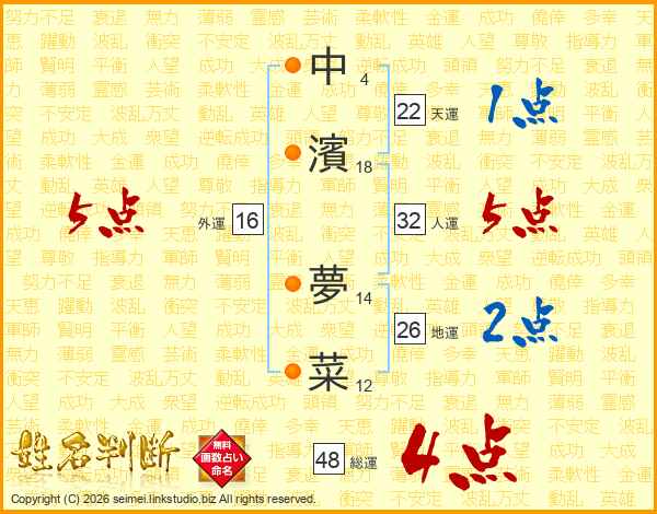 中濱夢菜さんの総運は48画の4点!