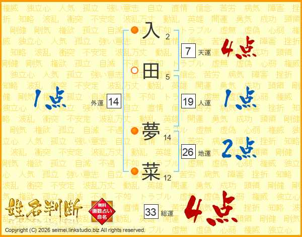 入田夢菜さんの総運は33画の4点!