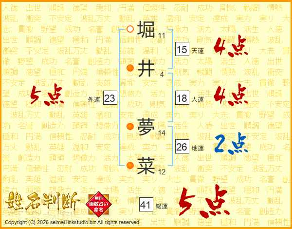 堀井夢菜さんの総運は41画の5点!