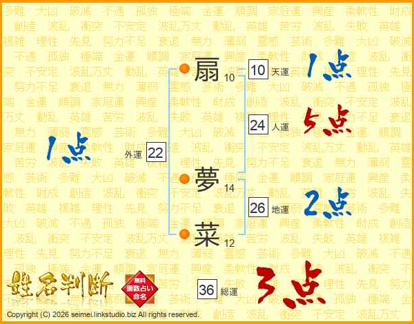 扇夢菜さんの地運は26画の2点!