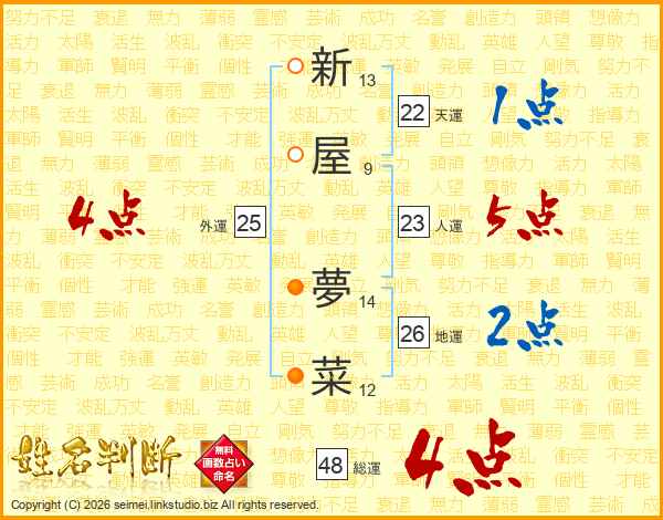 新屋夢菜さんの総運は48画の4点!