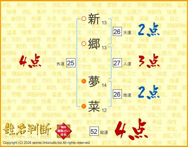 新(13画)郷(13画) 夢(14画)菜(12画)