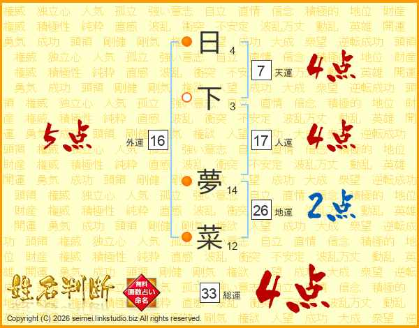 日下夢菜さんの総運は33画の4点!