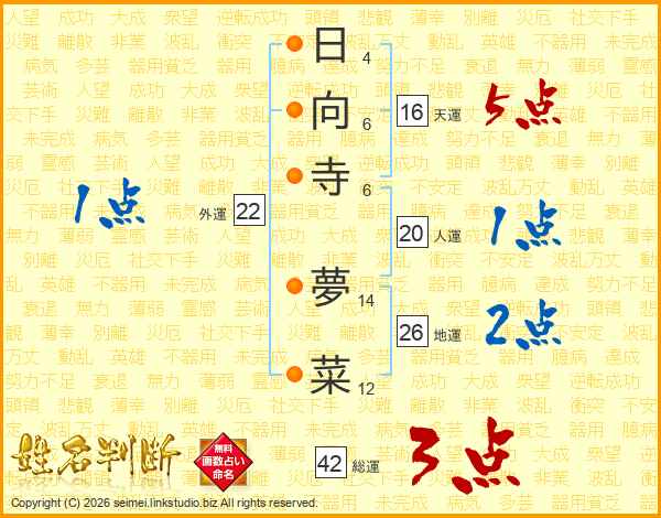 日向寺夢菜さんの総運は42画の3点!