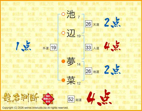 池辺夢菜さんの総運は52画の4点!