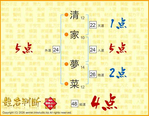清家夢菜さんの総運は48画の4点!