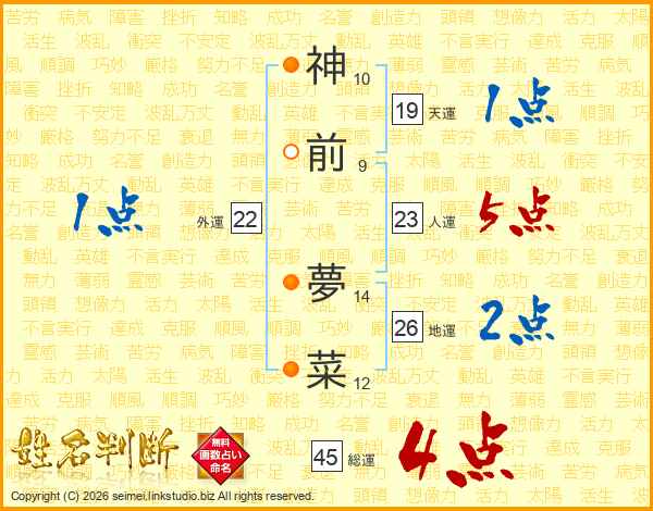 神前夢菜さんの総運は45画の4点!