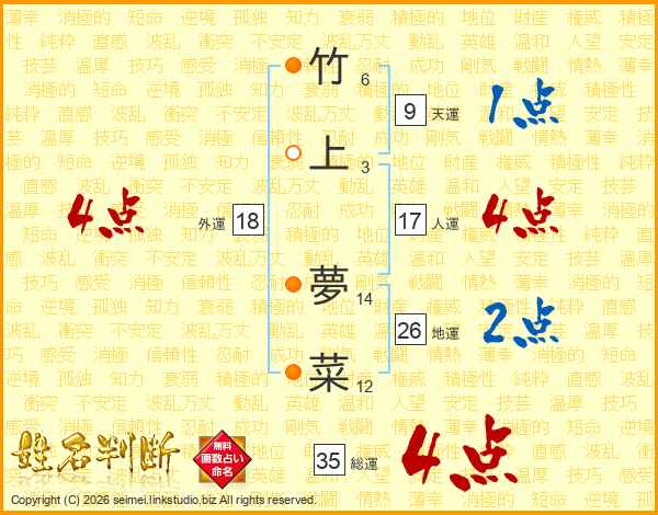 竹上夢菜さんの地運は26画の2点!
