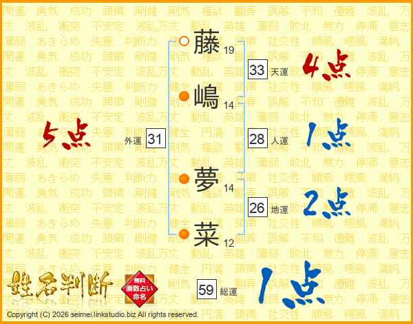 藤(19画)嶋(14画) 夢(14画)菜(12画)