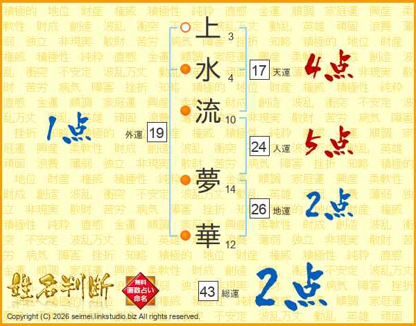 上水流夢華さんの人運は24画の5点!
