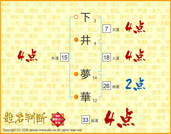 下井夢華さんの総運は33画の4点!