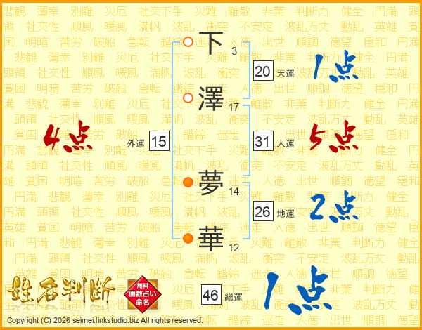 下澤夢華さんの地運は26画の2点!
