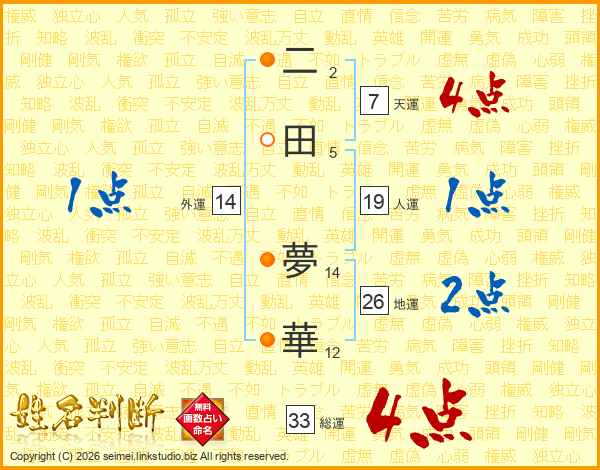 二田夢華さんの総運は33画の4点!