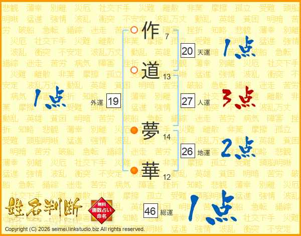 作道夢華さんの総運は46画の1点!