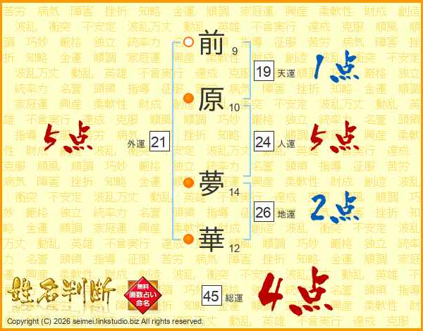 前原夢華さんの総運は45画の4点!
