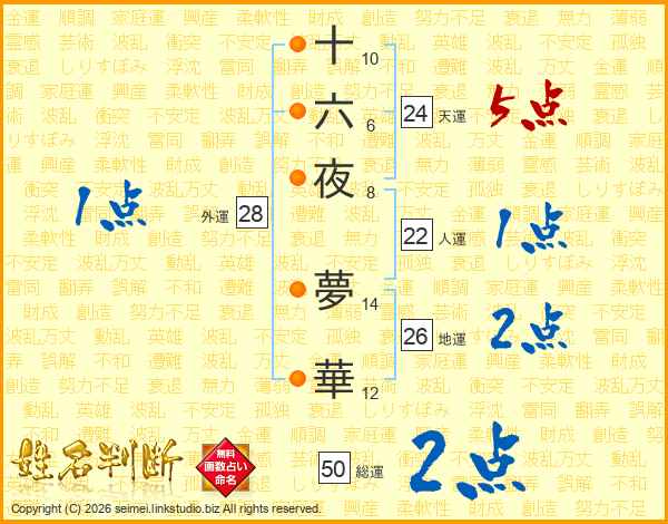 十(10画)六(6画)夜(8画) 夢(14画)華(12画)