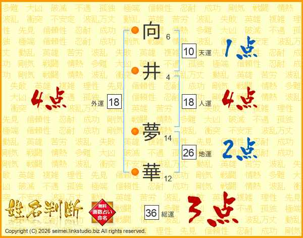 向井夢華さんの外運は18画の4点!