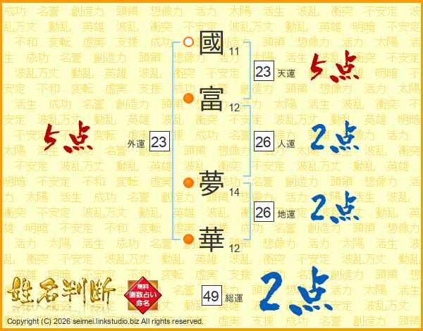 國富夢華さんの総運は49画の2点!