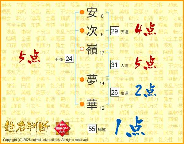 安次嶺夢華さんの総運は55画の1点!