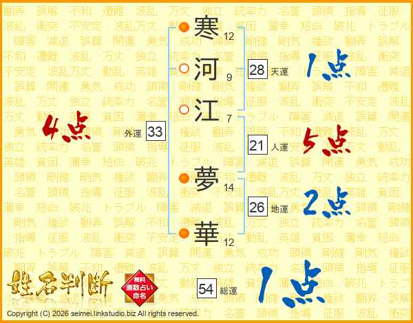 寒(12画)河(9画)江(7画) 夢(14画)華(12画)