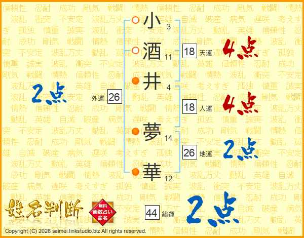 小酒井夢華さんの総運は44画の2点!